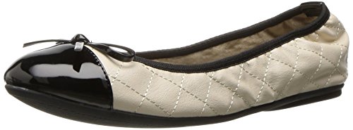 Butterfly Twist OLIVIA Ladies Quilted Ballerina Flats Cream/Black Ultra comfortable and stylish ballerina flats by Butterfly Twist. Slip them on and off at your convenience and enjoy a luxury walking experience on the memory foam footbed. Super flexible and lightweight taking you from day to night at ease finished with a quilted faux leather upper and patent toe with a feminine bow for a timeless yet contemporary touch. Upper: SyntheticLining: SyntheticSole: Rubber